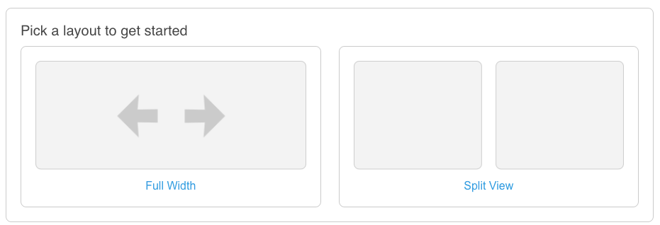 2. Forms built within the Form Builder can have multiple sections and each section can have one of two layouts, either Full Width or Split View. Simply click the preferred layout to create a new section: