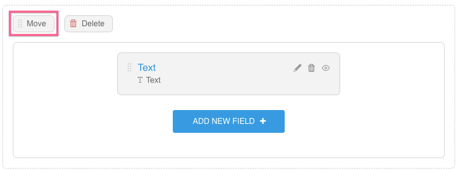 To move a whole section, click on the Move button and drag it to where you want it to be, then release: