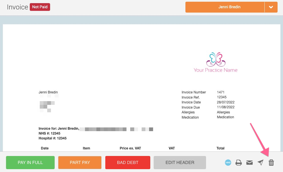 If you do not see the Trash can icon, it means the invoice will have a payment associated with it. You will firstly need to remove the payment information before you can delete the invoice.