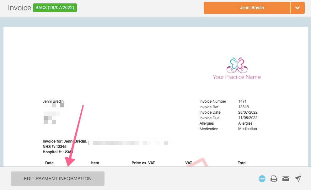 1.  Click on the Edit payment information button at the foot of the invoice: