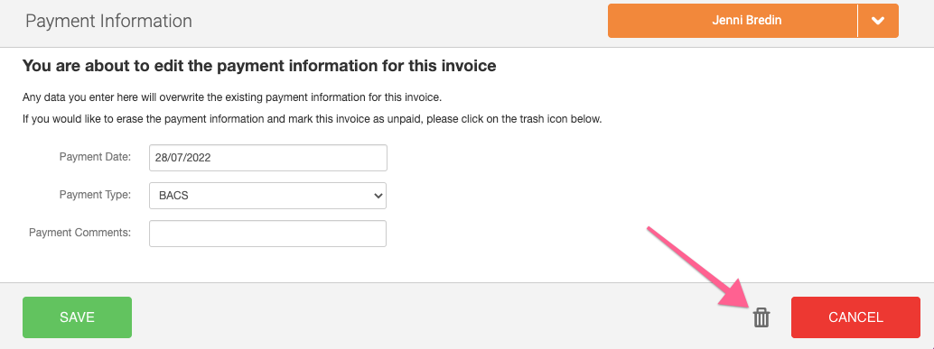 3.  Once the payment information has been removed, the invoice can be deleted following the steps in the section above.