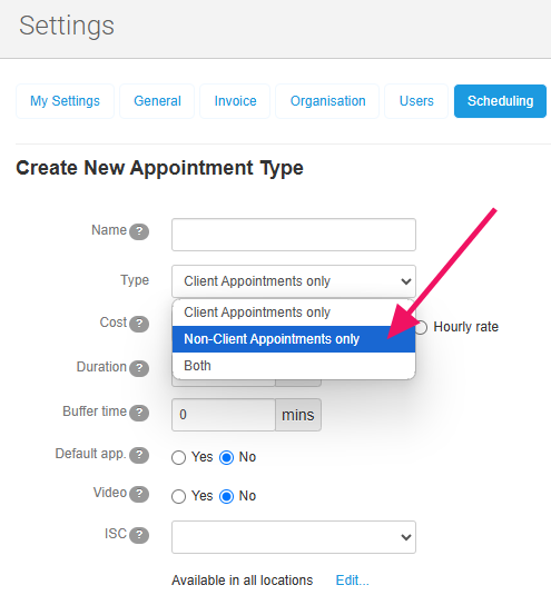 To create a non-patient appointment type, you just need to select 'Non-Client Appointment only' when creating or editing a type: