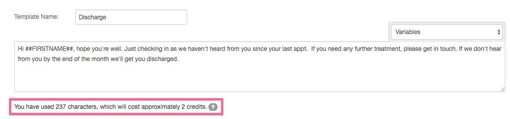Note: You can see an indication of how many credits you will use under the message content box. Please be aware that the number of characters in your actual sent messages might be different once the variables are populated: