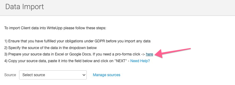 To make this process as simple as possible, we've provided you with a template pro-forma on the data import screen which can be downloaded:
