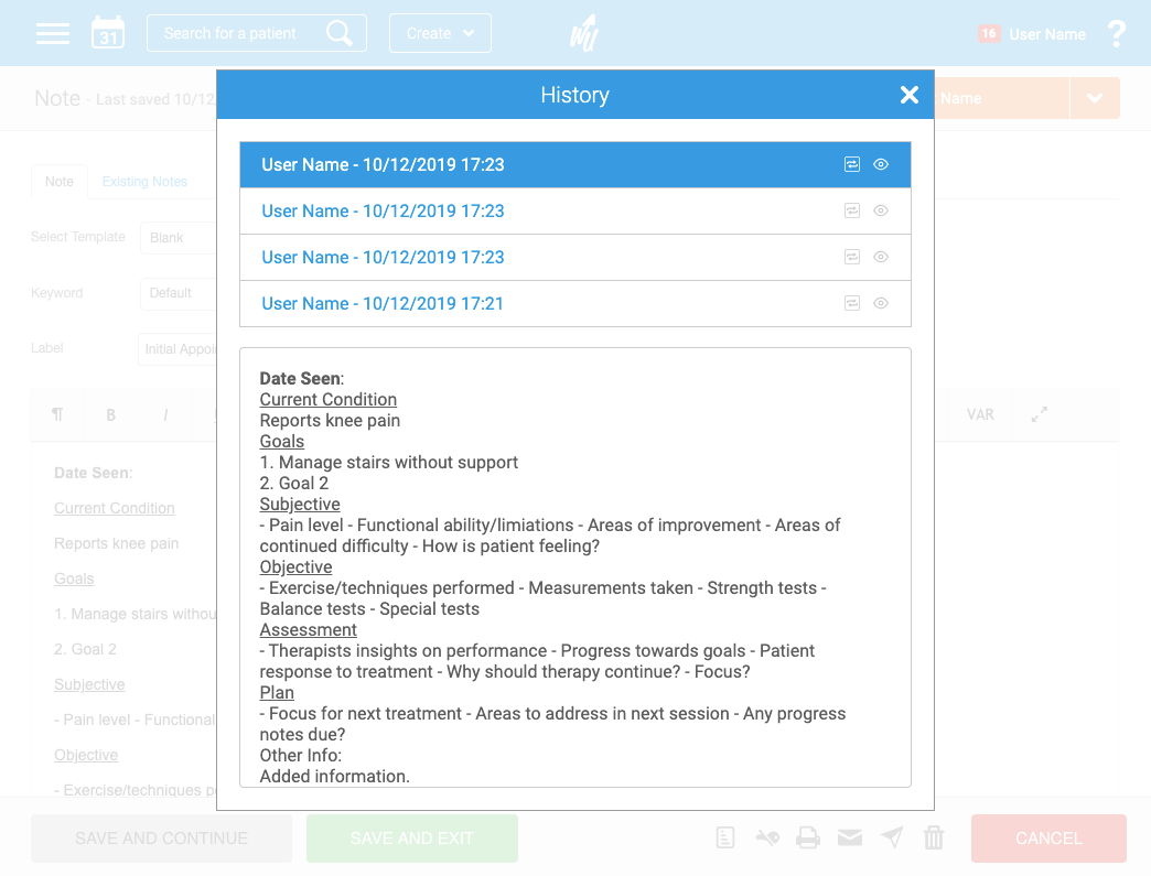 Importantly, in both cases, version history has been fully implemented, so you have a full audit trail of changes made to the note. You also have the ability to manually lock a note (thereby rendering it non-editable) if you wish to do so.
