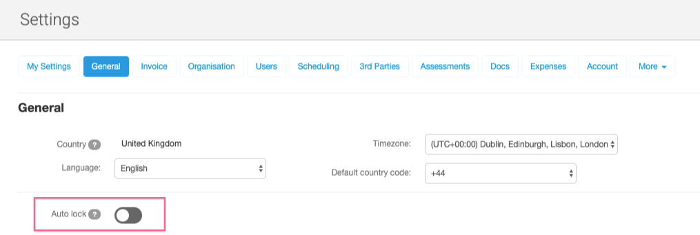 You can change the Auto lock setting for your site using the 'Auto lock' switch under Settings -> General (Admin only). Auto lock is set to off by default (see below). If you would like WriteUpp to automatically lock your notes after 24 hours, simply toggle the switch to the right.