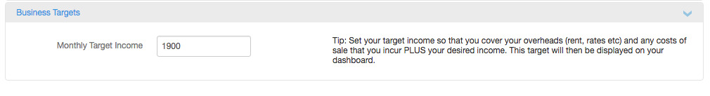 KPI targets are set within your Settings. Go to Settings -> General and scroll to the bottom of the page. Here you will find 'Business Targets' where your Monthly Target Income can be set.