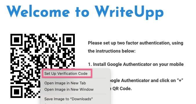 1. On macOS, right click on the QR code and choose Set up Verification Code: