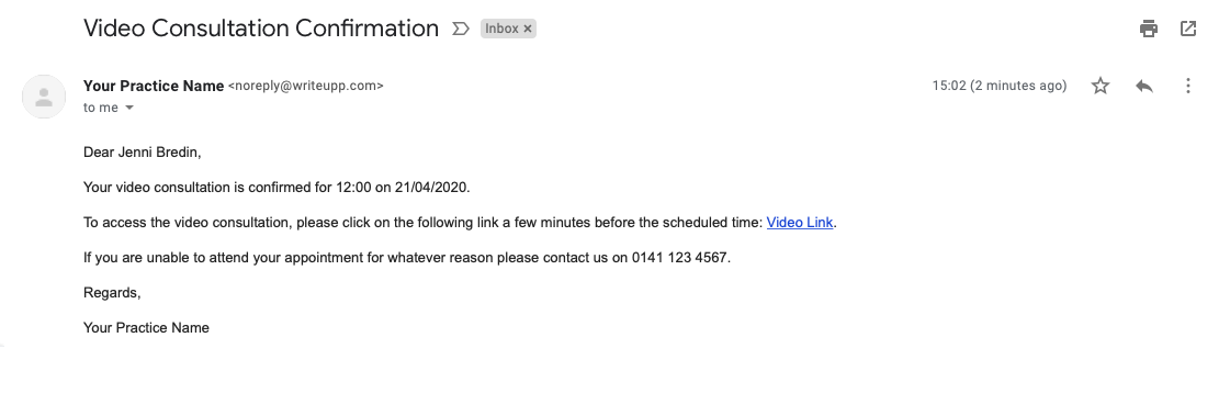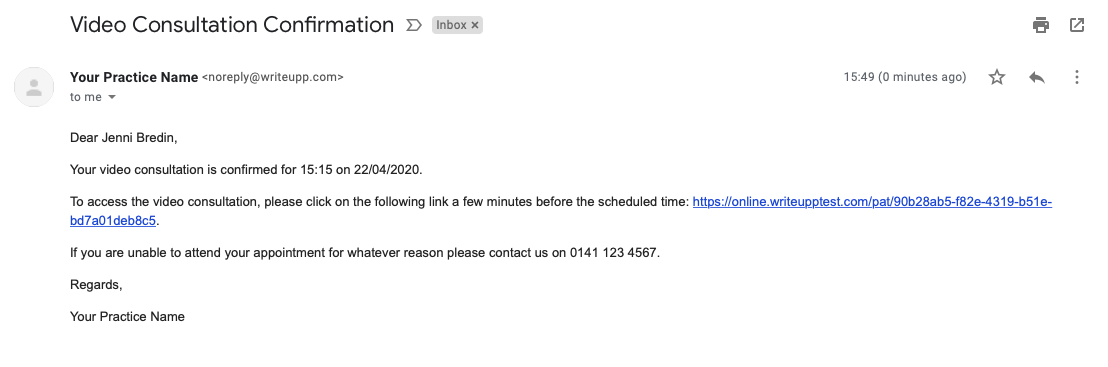 The access link is generated and linked to an appointment at the time it is booked, and remains linked throughout any changes you make to the appointment until it has been concluded. You have the option to manually capture and send your patients their access link, but the quickest and easiest way to provide this is by using the automated confirmations and reminders that WriteUpp can send for you.