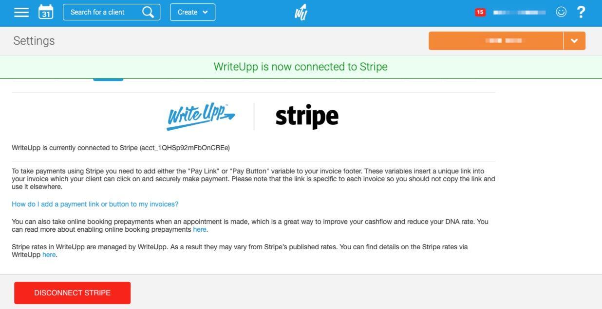 If you've currently got Stripe connected to WriteUpp, please follow these steps to switch your connection: