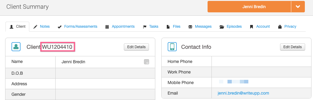 In Notes/Documents/Messages you can refer to a client using their WUID instead of their Name so that these documents don't contain any PII (Patient Identifiable Information). To do this just insert the WUID variable into the document or template - Read How
