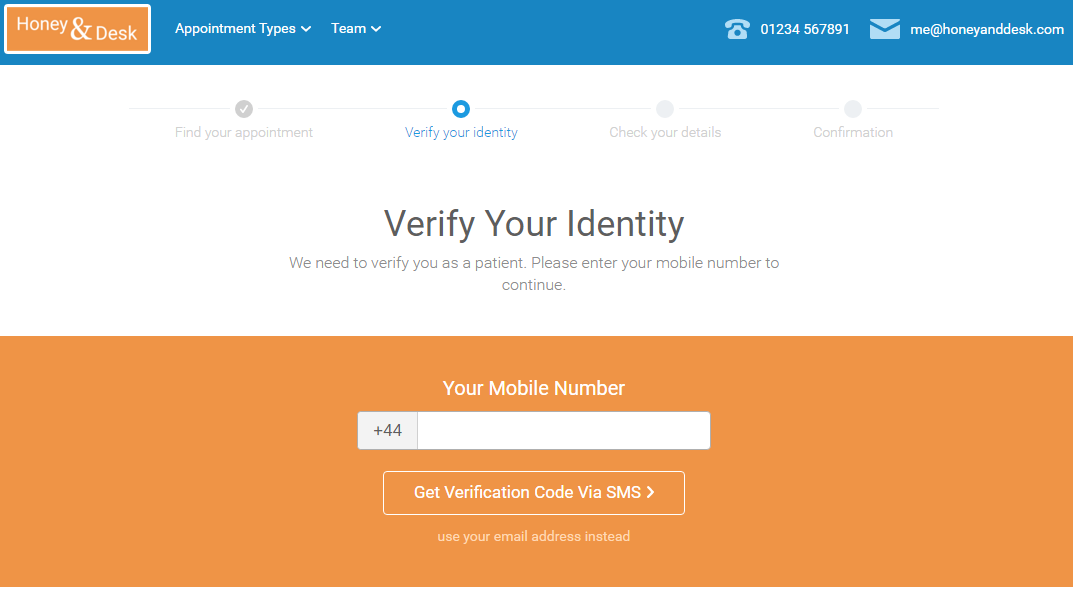 The Details of your client's chosen appointment are then summarised, including the Appointment Type, Time, Date and Clinician. If the client already exists in WriteUpp with a matching mobile number, their details including Name, Date of Birth and Email Address will be presented to them. If they don't exist in your WriteUpp instance, the client will be able to enter their details which will automatically create a new record for them in WriteUpp. They can also enter any Additional Information which will be visible to you in WriteUpp.