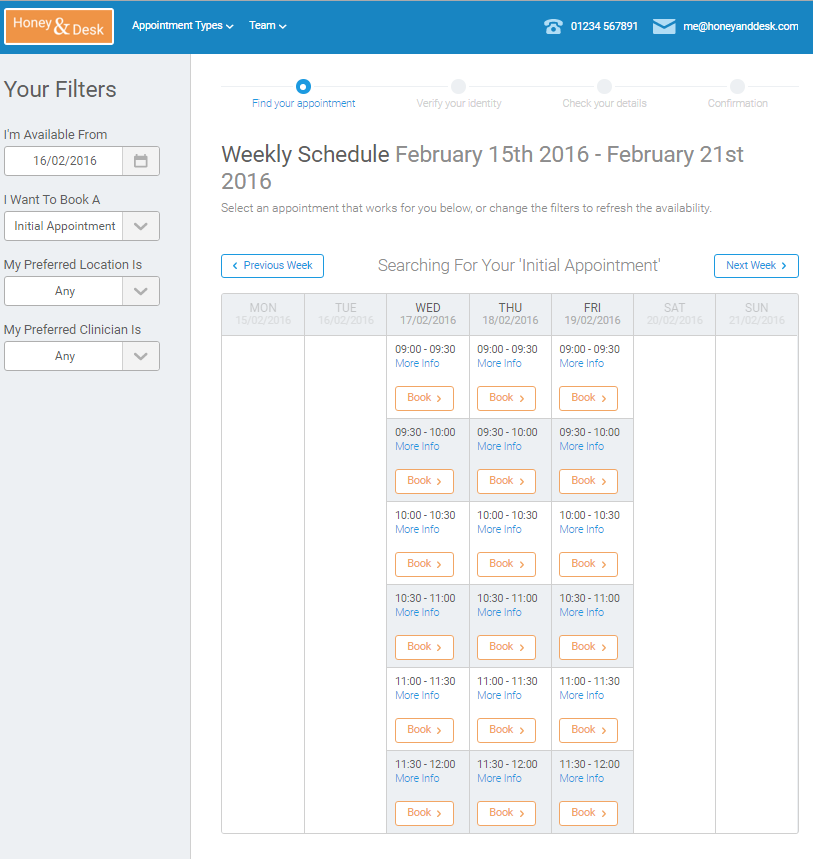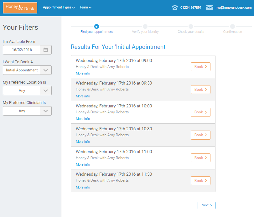 Here, all they have to do is select when they would like to be treated and what treatment they would like, then they just need to click "Find the Next Available Appointment".
